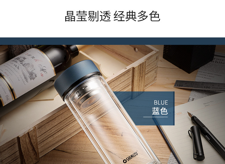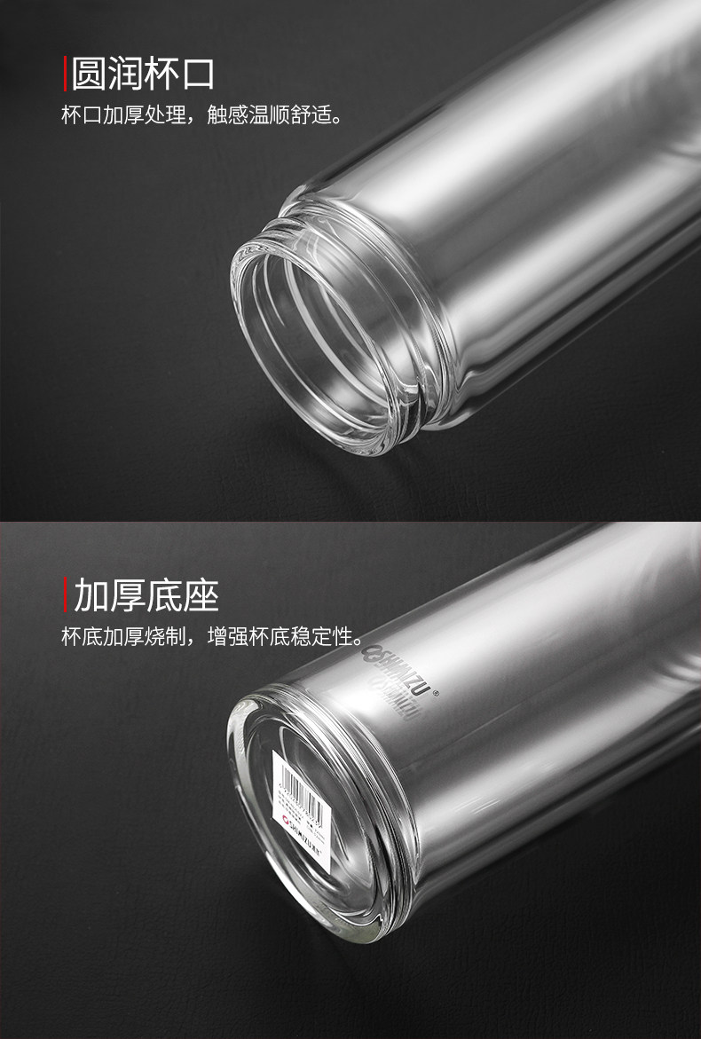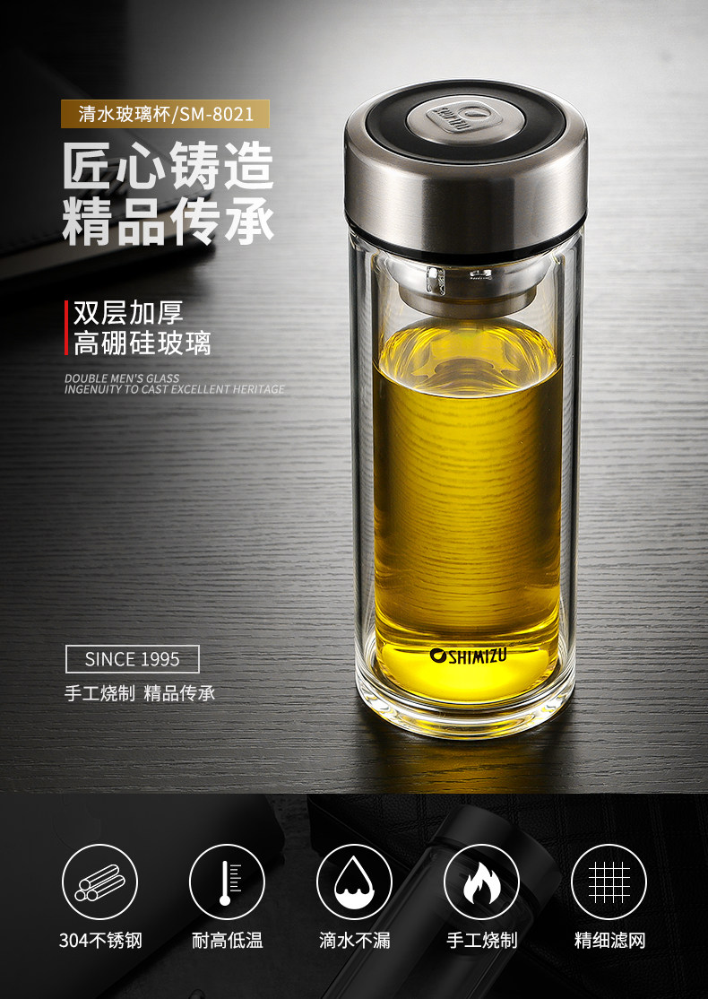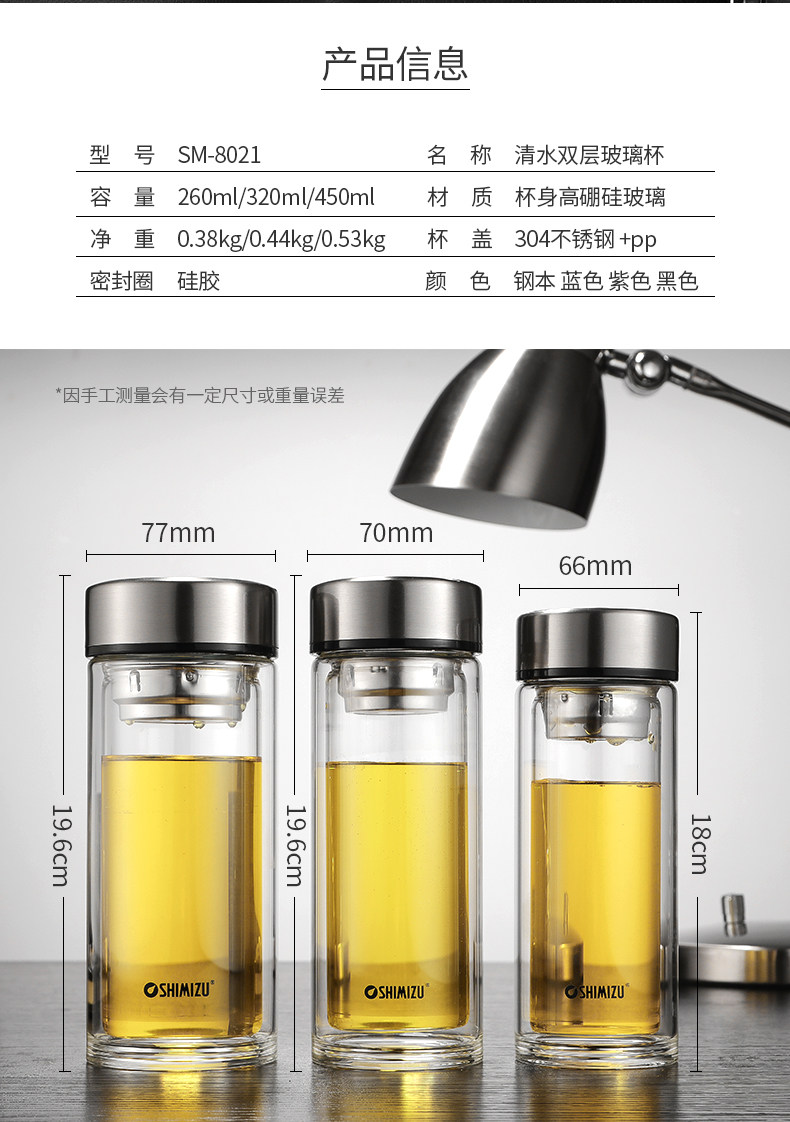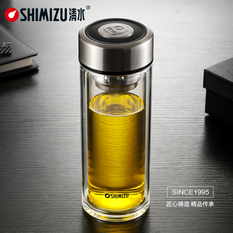清水玻璃杯双层耐热家用水杯大容量杯子男女带盖过滤透明便携茶杯